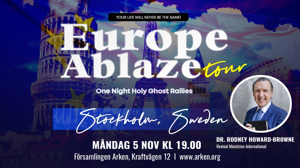Under en turné i Europa som pågår mellan den 5-21 november gör Rodney Howard-Browne ett unikt besök i Sverige och har endast ett kvällsmöte som sker i församlingen Arken.